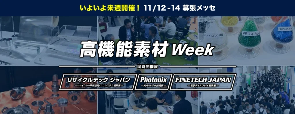 11月12日(水)~11月14日(金)幕張メッセにて開催される「高機能素材WEEK」にブース出展いたします。